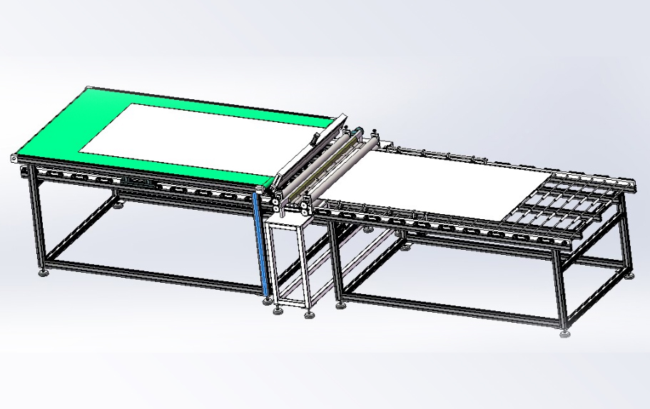 本生產(chǎn)線依據(jù)用戶需求,進(jìn)行“量身”設(shè)計(jì),由層壓前鋪設(shè)傳輸線;通過不同機(jī)構(gòu)的傳輸、轉(zhuǎn)運(yùn)、變向、定位、旋轉(zhuǎn)/釋放實(shí)現(xiàn)組件封裝過程的流水化操作,可提高單位組件生產(chǎn)效率。